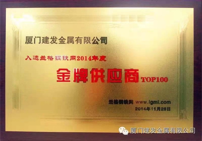 建發(fā)金屬公司喜獲“蘭格鋼鐵網(wǎng)2014年度金牌供應商TOP100強”